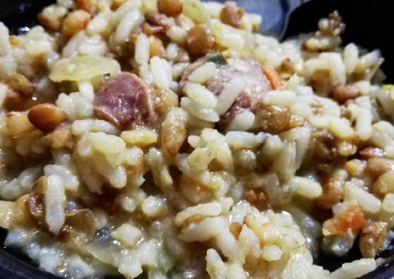 - En un sartén freír la longaniza cortada en lonjas delgadaditas. Cuando esté la longaniza crujiente, incorporar la cebolla picada, En una cacerola cambiar el sofrito preparado... Colocar 3 o 4 tazas de Agua hirviendo, incorporar el sobre de arroz con el sabor elegido y las 2 cajas de lentejas cocidas... Espere 20 a 25 minutos...